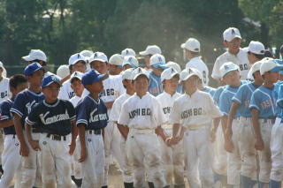 | 正直、各大会で上位では聞いたことないチームだし、「1回戦は突破できるだろう」と自分に言い聞かせるほどチーム状態が悪い(>_<)。 試合場に行くと先に相手チームが来てる。なーんか「やだなぁ」と弱気の虫がチクチクと胸を刺す。監督、コーチも身なりがシッカリしてサングラスも似合ってて、もう「強そう」って見えちゃうから弱気はダメですね(>_<)。 初回に三者連続四球でノーアウト満塁のチャンス!が後続三者連続内野ゴロで無得点。 ノーアウト満塁はホントに点入らない(ーー゛)。 またズルズルいっちゃうのかと心配するもウチのエースが絶好調(^−^)。 相手を寄せ付けません。 二回また連続四球でランナーを溜めます。また初回のリプレイか?と今度はタイムリーが出てシッカリ打って点を取りました。 最終回は大量点の試合でよくある集中切れの凡ミスで 点を与えてしまいました。 こういう試合はスンナリ終わらないと次のレベルにはイケません。 ただ、この試合で打撃については何かつかんだ気がします。 |
