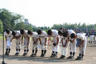 | 春先の月ドラの試合を見て「すんげぇ強いチームだなぁ」と印象が強く、試合前に「ウチもまぁここまで良くやったよ」としみじみ思ってました。 初回エースが不安な立ち上がり。四球に死球でダブルスチールも決められてワンアウト二、三塁。「何点取られるんだろう・・・」と下向いちゃいました(>_<)。 が、後続を断って無得点(^−^)。 その裏先頭ヒットを皮切りに四球を絡めて打線爆発!! ホント予想外\(◎o◎)/! なんだか実感の無い勝利でした。 |